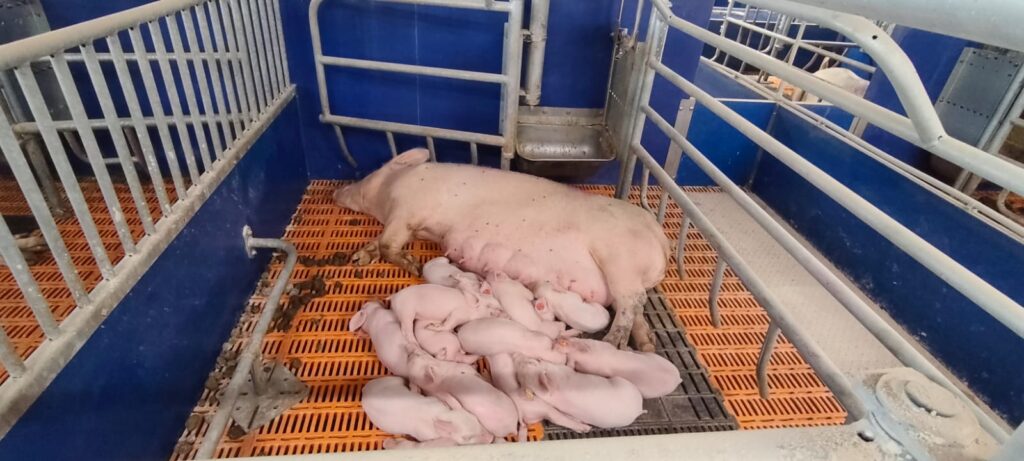 „Modernizace farem zahrnuje současně instalaci welfarových porodních kotců, rovněž značky Big Dutchman, které umožňují volný pohyb prasnice,“ pokračoval Ing. Pavliš. „Praxe ukazuje, že optimální je ponechat prasnici v uzavřeném stavu prvních pět dní po porodu kvůli provedení kastrace a ošetření selat, a od šestého dne ji pustit na volno. Tento systém minimalizuje rizika zalehnutí selat a zlepšuje kondici zvířat.“