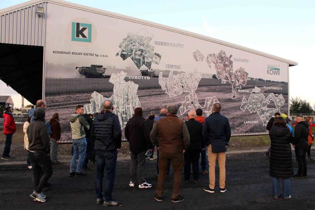 První z navštívených polských farem byl Kombinat Rolny Kietrz Sp. z o. o., který vznikl v roce 1962 spojením státních statků a zůstal po roce 1989 státním podnikem. Hospodaří na 8500 hektarech zemědělské půdy a od roku 2013 k němu patří i hřebčín s huculskými koni v Gładyszówě s dalšími zhruba 300 hektary. Roční úhrn srážek se pohybuje mezi 450–700 mm. Na statku pěstují ozimou pšenici potravinářskou i krmnou (4476 ha v roce 2025), kukuřici na zrno (2331 ha) i na siláž (754 ha), řepku (931 ha) a cukrovku (1032 ha), dále sóju (491 ha), vojtěšku (457 ha) a jílek mnohokvětý (355 ha). Pole nedělí na třicetihektarové půdní bloky jako v ČR, průměrná velikost honu dosahuje 100 hektarů. Půdním typem je převážně hnědozem. Průměrně za poslední tři roky v podniku dosáhli výnosu pšenice kolem 9,84 t/ha, v roce 2024 však 500 ha pšenice poškodily kroupy. U řepky docílili průměrného výnosu za tři roky 5,38 t/ha. U cukrové řepy dosáhli v tříletém průměru výnosu 92,51 t/ha při 16% cukernatosti. Statek patří k největším producentům cukrovky v Polsku, cukrovku dodávají také do tří cukrovarů v ČR. Farma dělá pokusy s odrůdami pšenice, které vysévají ve dvou termínech – v září a na přelomu listopadu a prosince. Získané výsledky pomáhají vybrat nejvhodnější odrůdy pro rané i pozdní setí, včetně potravinářských s důrazem na kvalitu lepku. Statek zakládá rovněž pokusy s cukrovkou, převážně konvenčními odrůdami, ale i Conviso Smart. U cukrovky využívají variabilní setí s hektarovým výsevkem 60–140 tisíc jedinců. Problém představuje plevelná řepa, kterou vytrhávají manuálně i mechanicky. Cukrovku rovněž plečkují. Statek využívá v rámci agrotechniky klasické zpracování půdy orbou, bezorebný systém s hloubkovým kypřením a pásové zpracování s využitím meziplodin. Na statku uplatňují variabilní hnojení podle zásobenosti půd živinami a využívají satelitní mapy s podkladem NDVI k optimalizaci dávek dusíku. V posledních letech podnik řeší i silný výskyt hrabošů, proti nimž používá návnadové obilí.